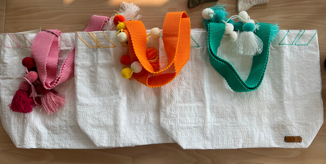 The materials that dutzi uses are eco-friendly, as well. The majority of Ariane’s bags are made from recycled burlap that she has spent years sourcing from all over Mexico. No mass production is involved: each bag is individually sewn and one-of-a-kind. Even the mecapál straps are hand made by one of the last families in the region trained in the traditional technique.